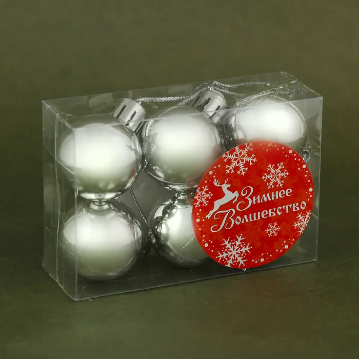Ёлочные игрушки «Глянец», шары новогодние, d=3 см, набор 6 шт., серебро — Характеристики