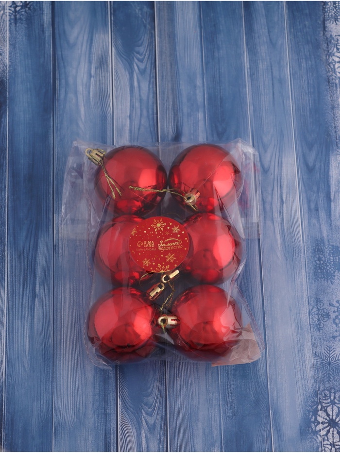Ёлочные игрушки «Глянец», шары новогодние, d=6 см, набор 6 шт., красный — Характеристики
