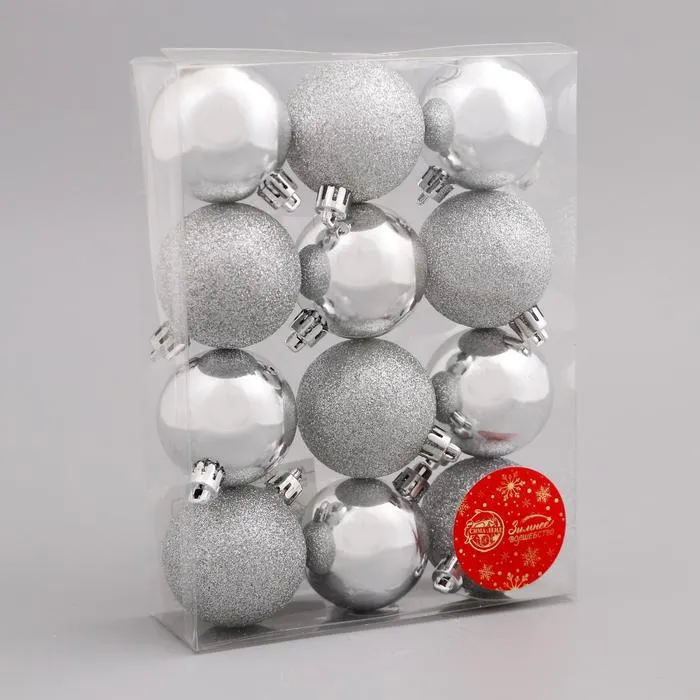 Серебристые новогодние шары с глянцевой поверхностью — это базовый, но выразительный элемент праздничного декора. Набор из 12 пластиковых игрушек диаметром 5 см подходит для создания светлого, но нарядного оформления ёлки. Они легко вписываются в датский, скандинавский и ар-деко стиль, добавляя интерьеру зимней свежести и лёгкого блеска.
