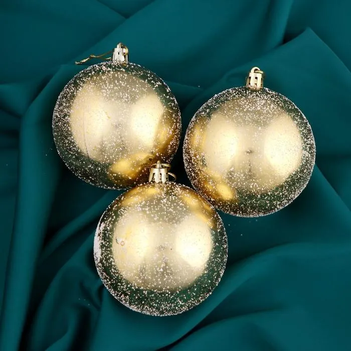 Пластиковые новогодние шары золотистого цвета — это стильное и сдержанное решение для праздничного декора. Игрушки диаметром 8 см выполнены в классической форме с глянцевой поверхностью и подходят под стили ар-деко, барокко и строгой классики. Набор из 3 элементов станет ярким акцентом на ёлке или дополнит уже существующий образ зимнего праздника без лишней пышности.