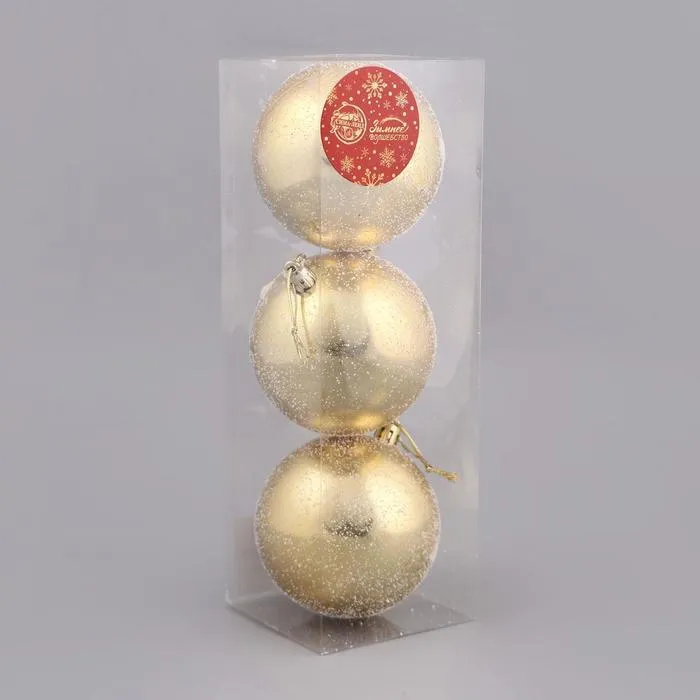 Ёлочные игрушки «Глянцевый снежок», шары новогодние, пластик, набор d=8 см, 3 шт., золотистый — Характеристики