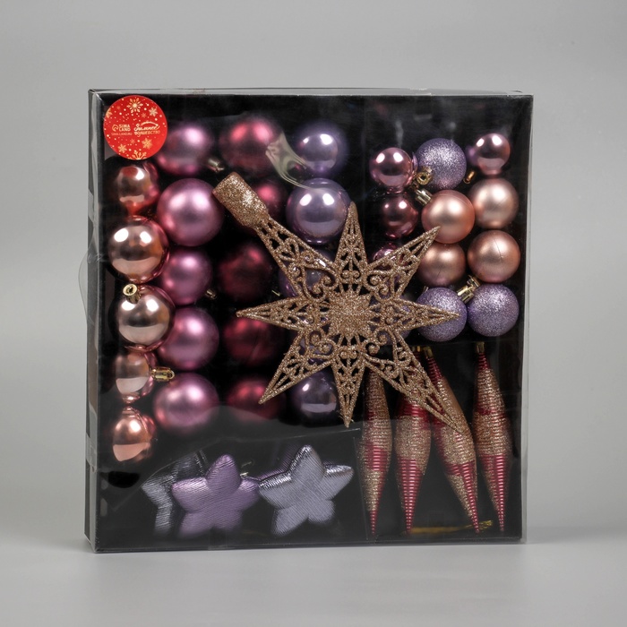 Ёлочные игрушки «Глория», набор с верхушкой 43 шт. (32 шара, 4 сосульки, 6 звёзд), МИКС — Характеристики