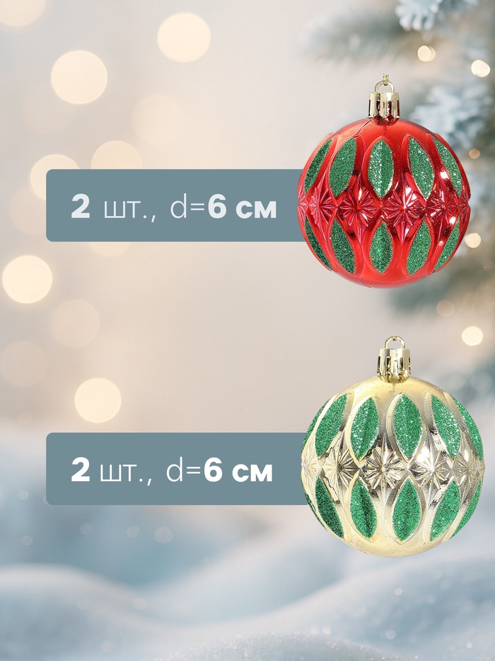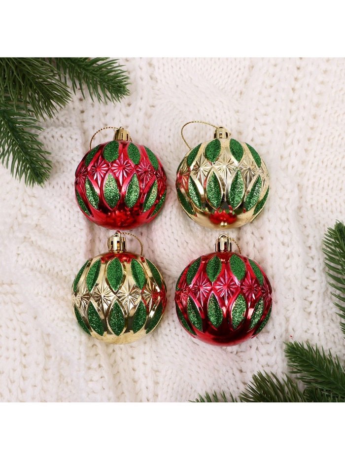 Эти шары создают образ праздника, где встречаются тепло дома и холод улицы. Красно-золотистые оттенки, точность формы и стильный рисунок делают их важной частью новогодней атмосферы. Используйте игрушки как основу или как элемент уже готовой композиции — они одинаково хорошо работают в разных стилистических решениях.