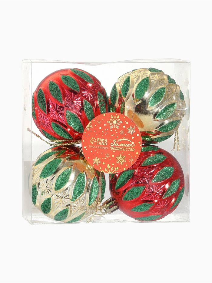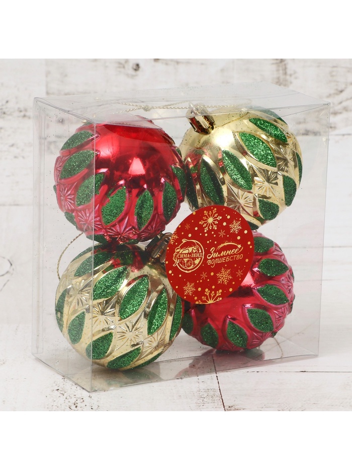 Ёлочные игрушки «Гранат», шары новогодние, d=6 см, набор 4 шт., красный/золотистый — Характеристики