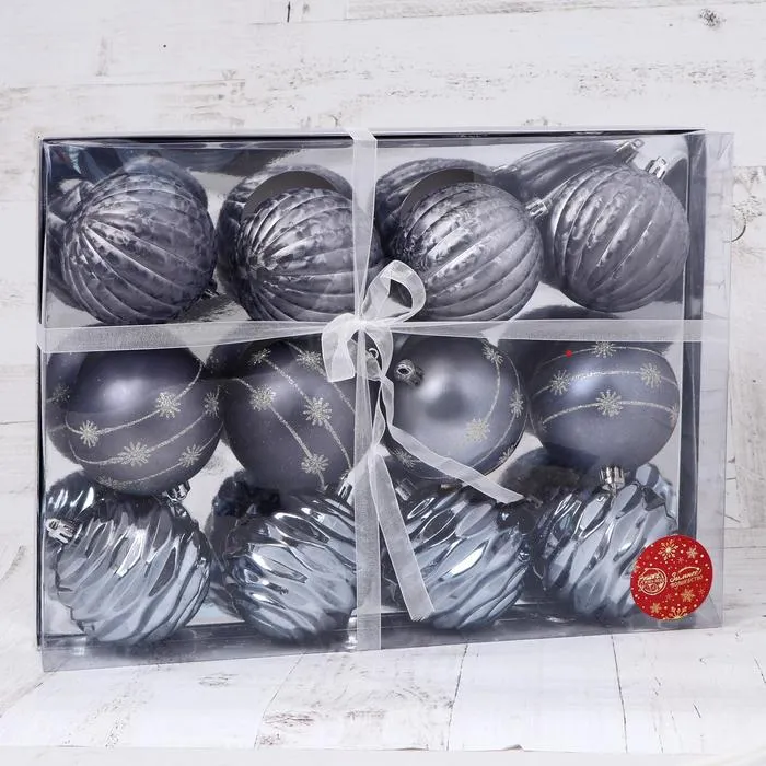 Ёлочные игрушки «Грани снежинка», шары новогодние, d=8 см, набор 12 шт. — Характеристики