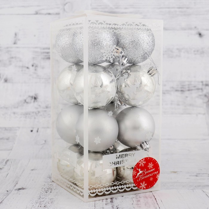 Ёлочные игрушки «Грациозно», шары новогодние, набор 16 шт., d=6 см, серебристый — Характеристики