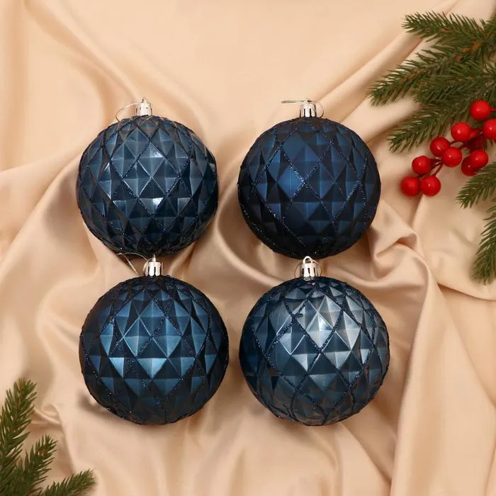 Ёлочные игрушки «Грейна», шары новогодние, d=10 см, набор 4 шт., синий — Характеристики