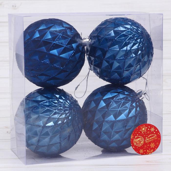 Ёлочные игрушки «Грейна», шары новогодние, d=10 см, набор 4 шт., синий