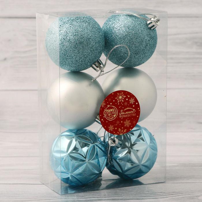 Ёлочные игрушки «Гвинет», шары новогодние, d=6 см, набор 6 шт., серебристо-голубой — Характеристики