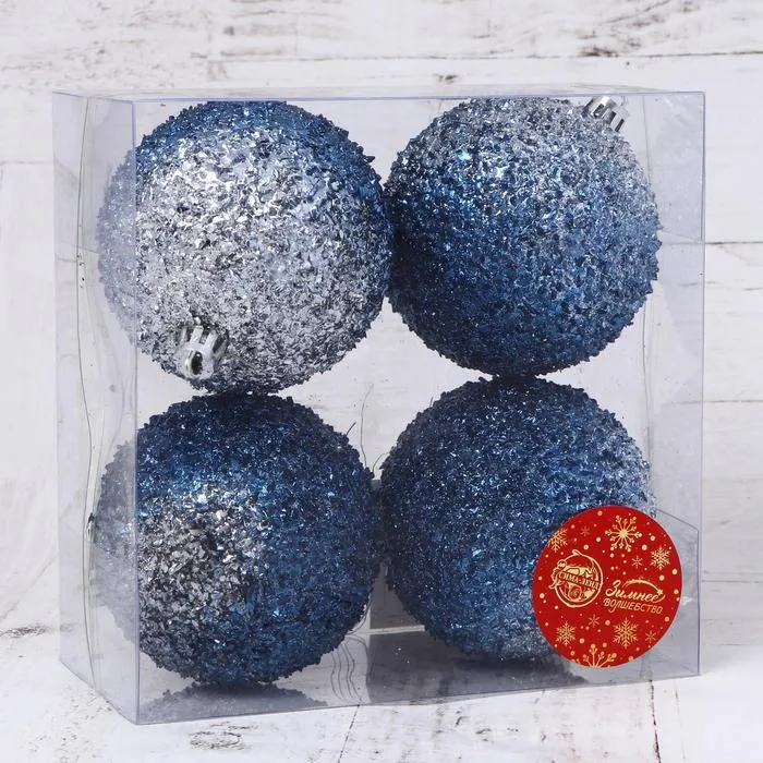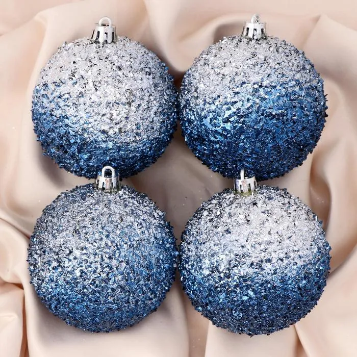 Ёлочные игрушки «Идэн», шары новогодние, d=8 см, набор 4 шт., серебристый/синий — Характеристики
