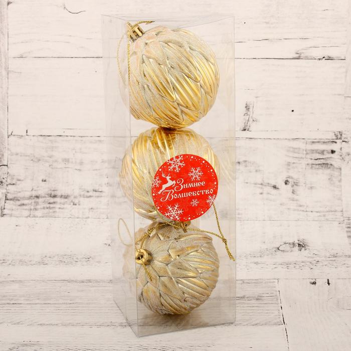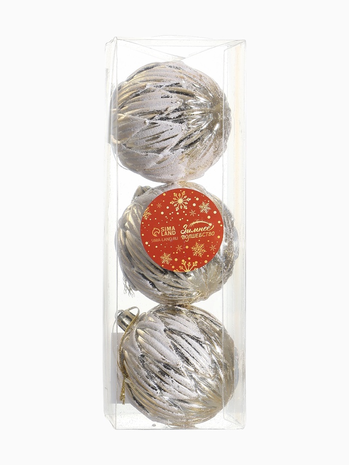 Ёлочные игрушки «Иней», шары новогодние, d=7 см, набор 3 шт., золотистый — Характеристики