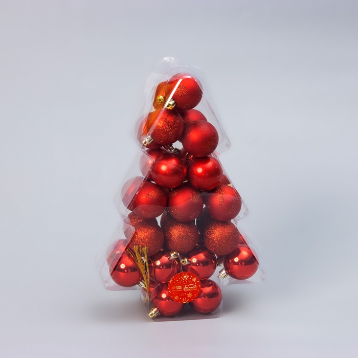 Ёлочные игрушки «Ёлочка - снежинки и горох», шары новогодние, набор 34 шт., d=5 см, красный — Характеристики