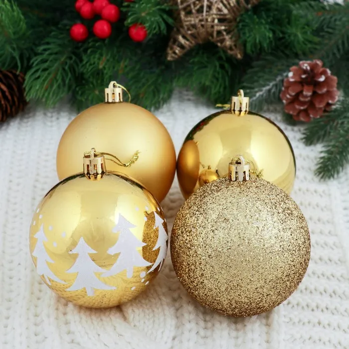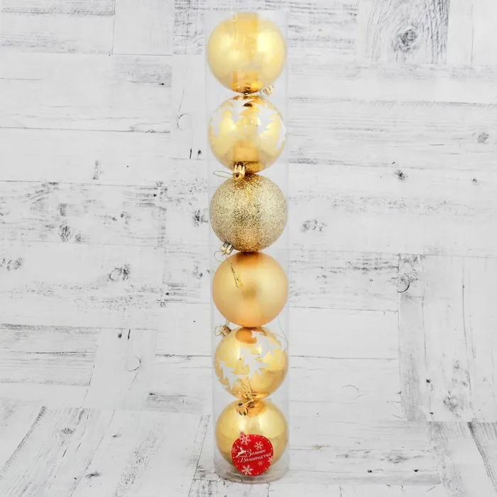 Ёлочные игрушки «Ёлочки ассорти», шары новогодние, пластик, набор d=8 см, 6 шт., золотистый — Характеристики