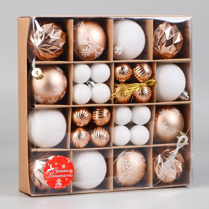 Ёлочные игрушки «Изабель» ассорти, шары новогодние, набор 44 шт. d=3 и 6 см, белый/золотистый
