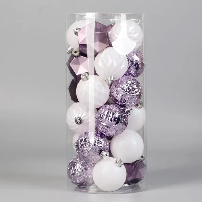 Ёлочные игрушки «Изабель» грани, шары новогодние, d=6 см, набор 24 шт., белый/сиреневый — Характеристики
