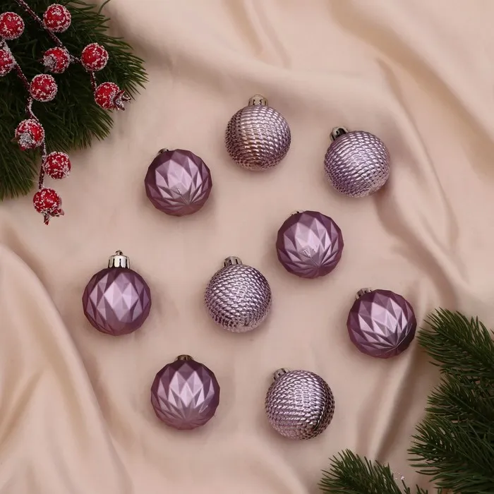 Сиреневые шары с узорами гармонично вписываются в новогодний интерьер, создавая уют и спокойствие. Их изящный дизайн помогает акцентировать внимание на деталях и добавить в атмосферу праздника нотки нежности и тепла.