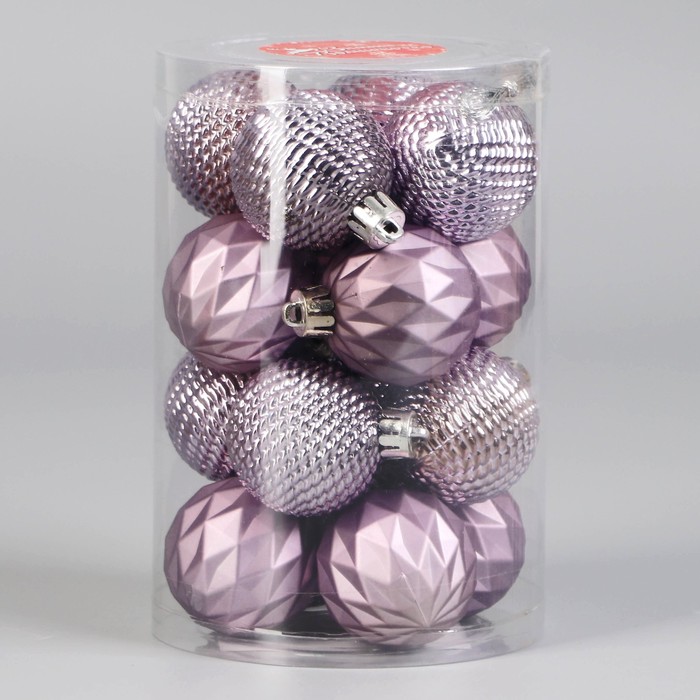 Ёлочные игрушки «Изабель», шары новогодние, d=4 см, набор 16 шт., узоры, сиреневый