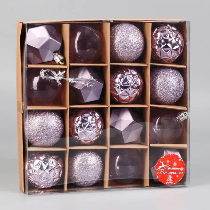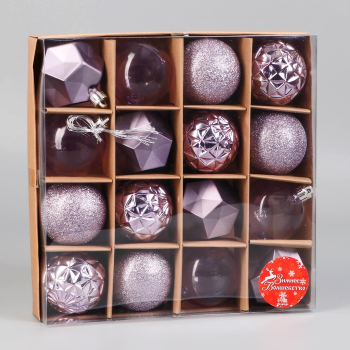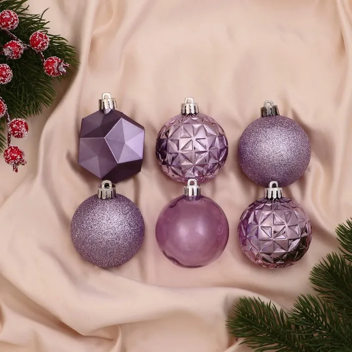 Ёлочные игрушки «Изабель», шары новогодние, d=6 см, набор 16 шт., грани, сиреневый — Характеристики