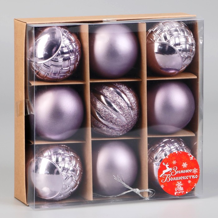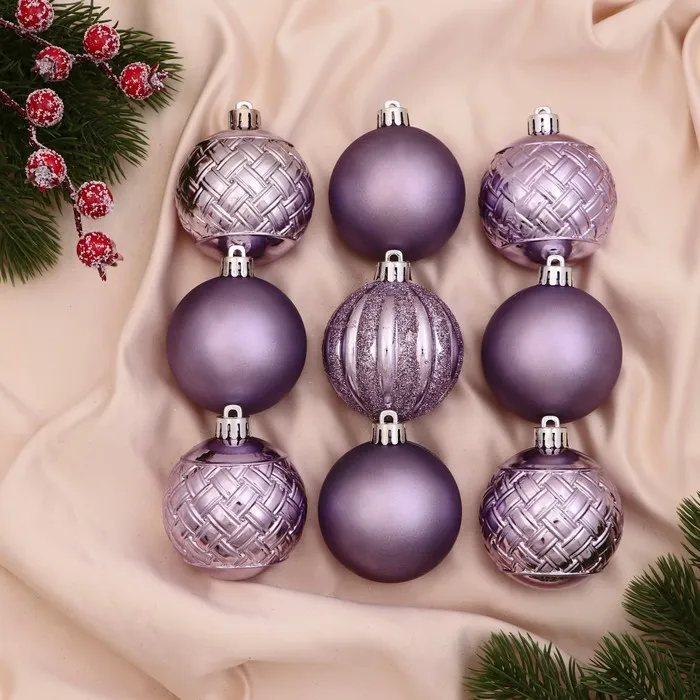 Ёлочные игрушки «Изабель», шары новогодние, d=6 см, набор 9 шт., геометрия, сиреневый