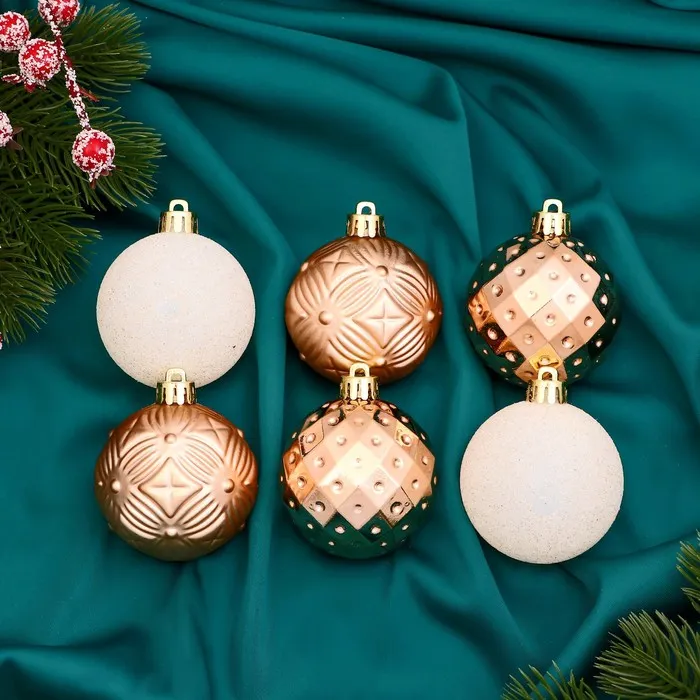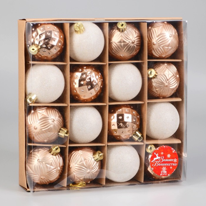 Ёлочные игрушки «Изабель», шары новогодние, набор 16 шт., d=6 см, геометрия, золотистый — Характеристики