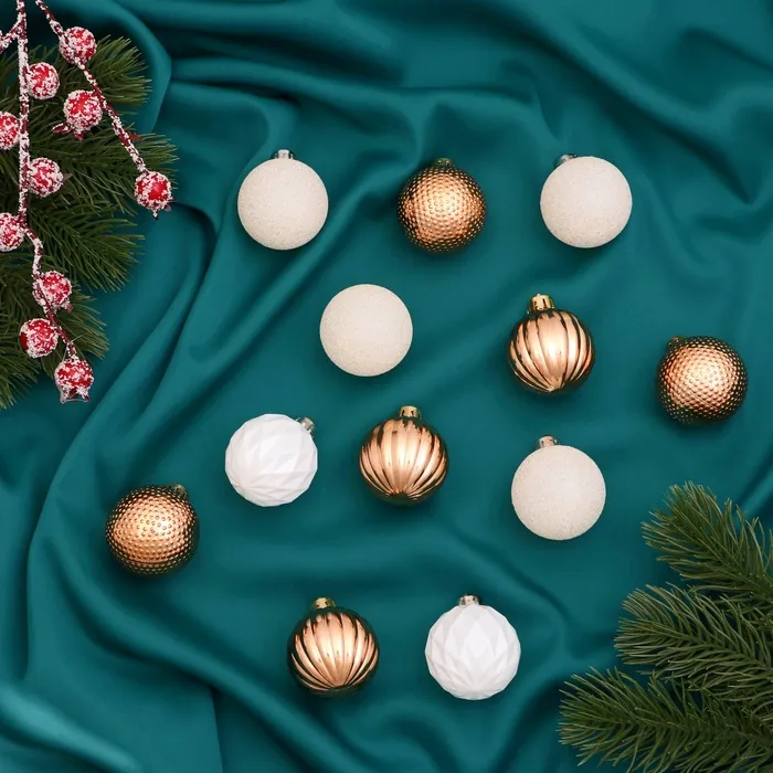 Ёлочные игрушки «Изабель» узоры, шары новогодний, d=4 см, набор 16 шт., белый/золотистый — Характеристики