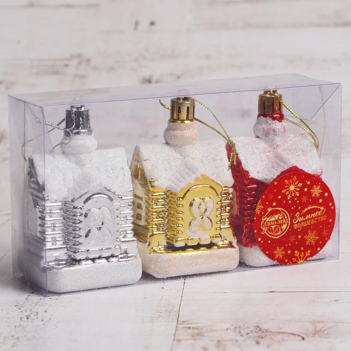 Ёлочные игрушки «Изба Деда Мороза», набор 3 шт., 5×6 см, МИКС