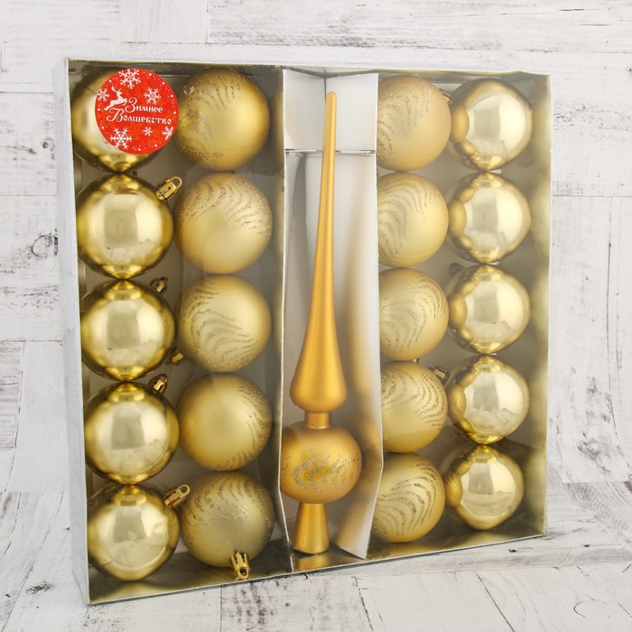 Ёлочные игрушки «Изгибы», с верхушкой, пластиковые, 20 шаров, золотистый — Характеристики