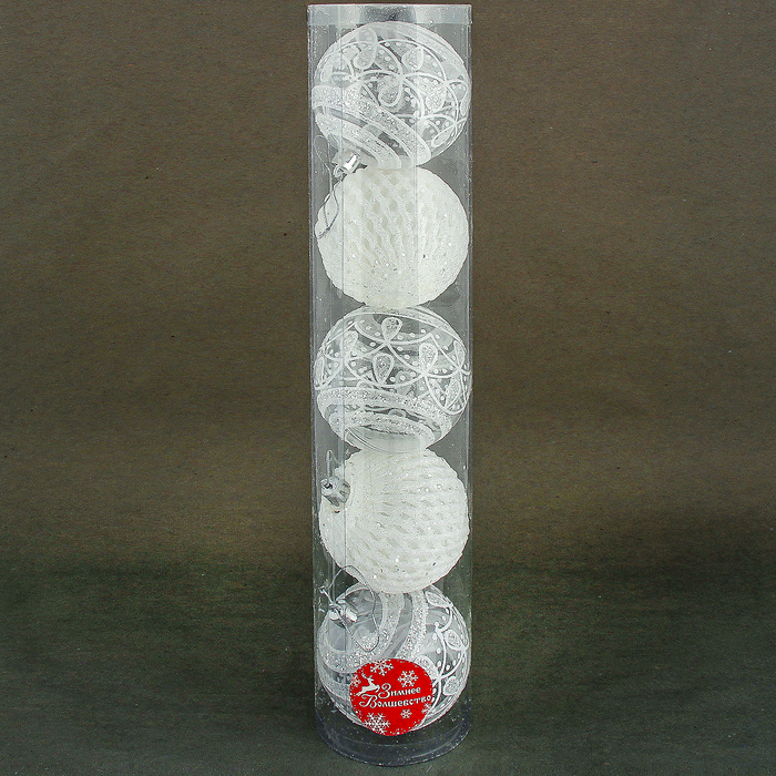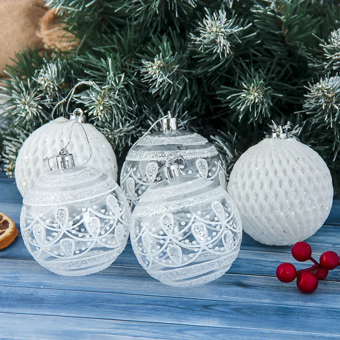 Ёлочные игрушки «Изморозь», шары новогодние, d=8 см, набор 5 шт., белый — Характеристики