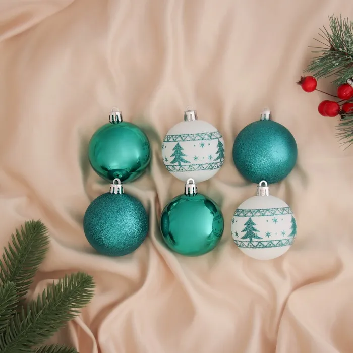 Ёлочные игрушки «Изумрудик-ёлочка», шары новогодние, d=6 см, набор 6 шт.,бело-зелёный — Характеристики