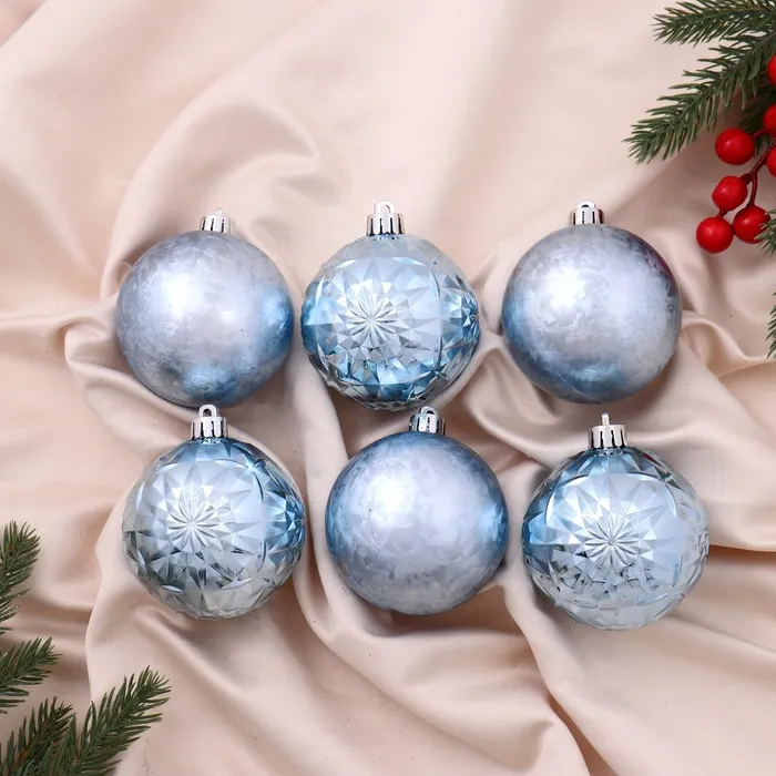 Ёлочные игрушки «Калейдоскоп ассорти», шары новогодние, d=7 см, набор 6 шт., голубой — Характеристики