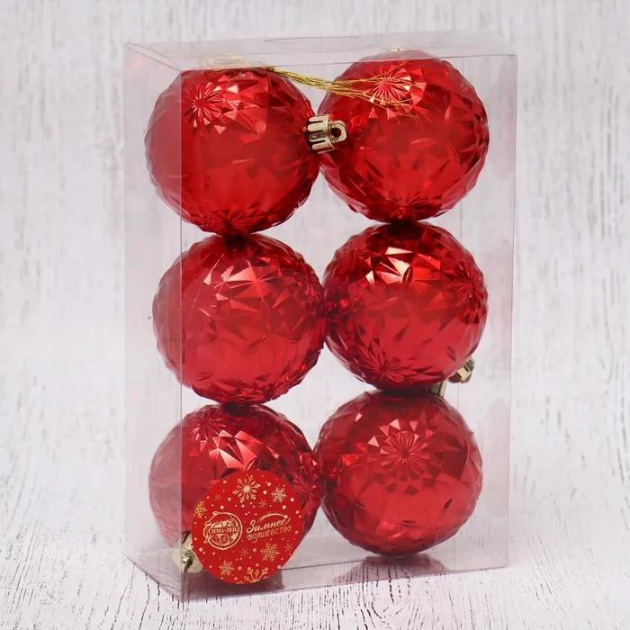 Ёлочные игрушки «Калейдоскоп», шары новогодние, d=7 см, набор 6 шт., красный — Характеристики