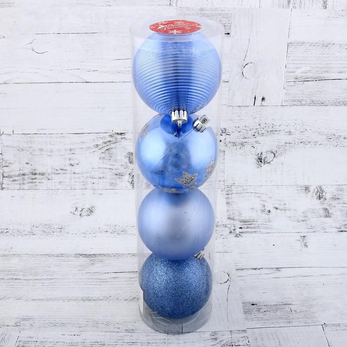 Ёлочные игрушки «Камея со звёздами», шары новогодние, набор d=8 см, 4 шт., синий — Характеристики