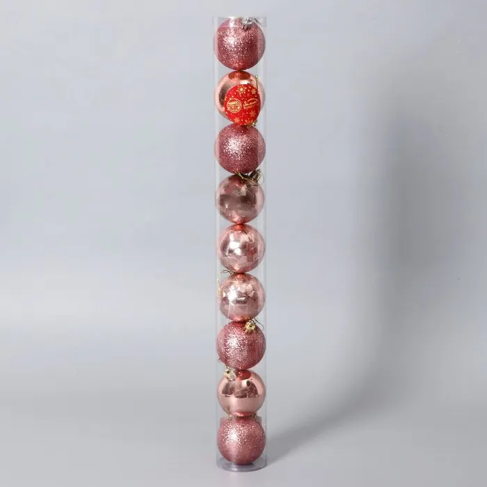 Ёлочные игрушки «Камилла», шары новогодние, набор 9 шт., d=6 см, розовый — Характеристики
