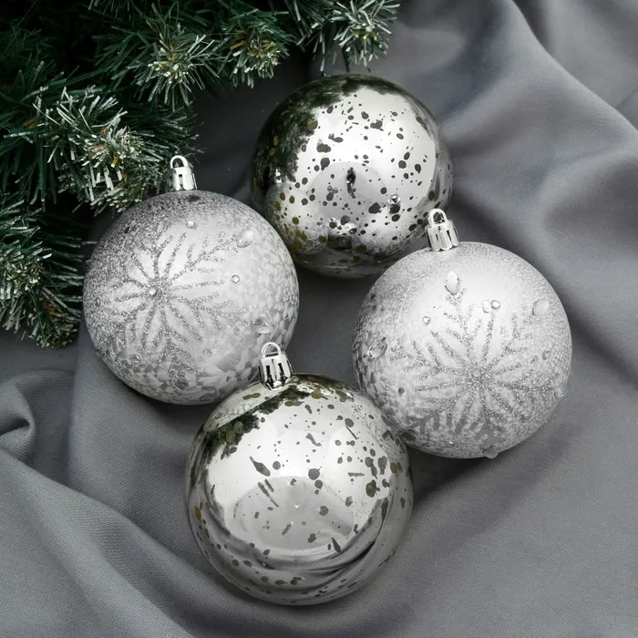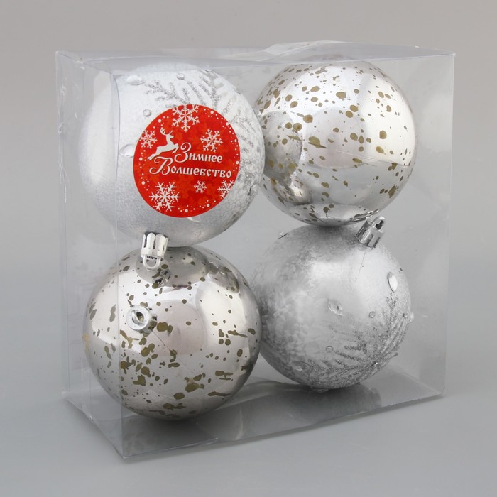 Ёлочные игрушки «Капель», шары новогодние, набор 4 шт., d=8 см, серебристый — Характеристики