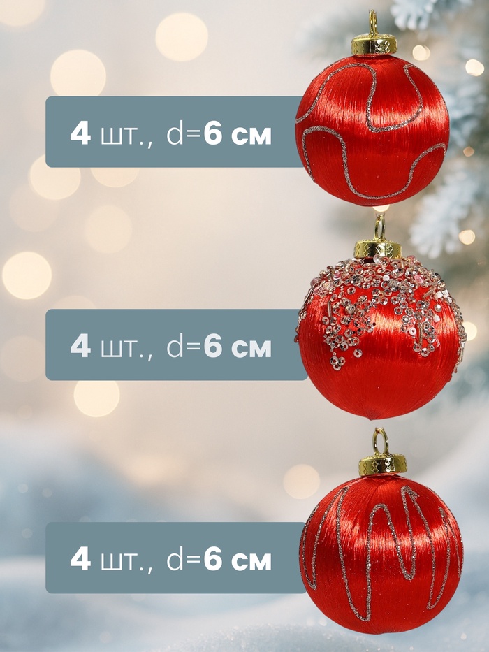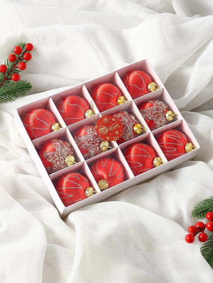 Ёлочные игрушки «Капризы зимы», шары новогодние, d=6 см, 12 шт., красный — Характеристики