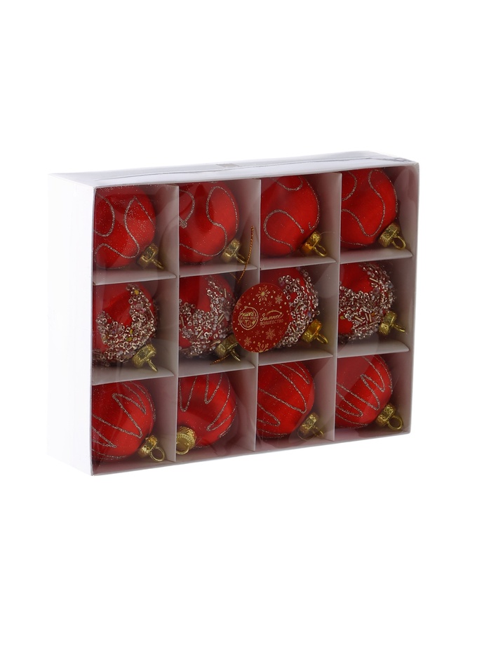 - В комплект входят 12 шаров с декоративным узором.