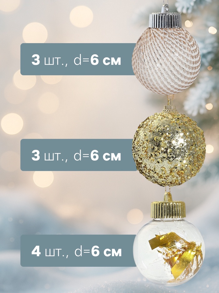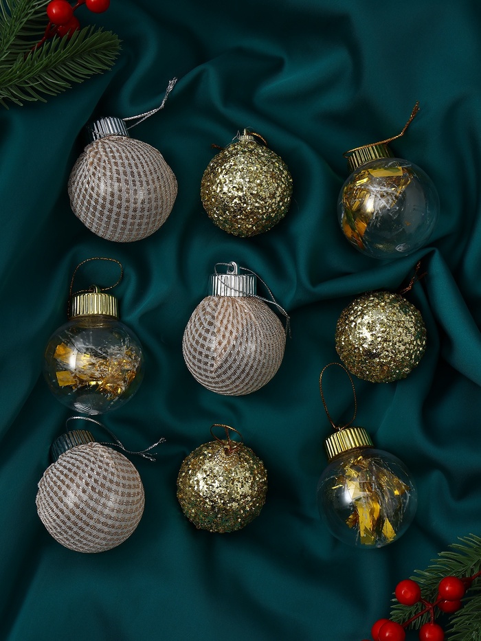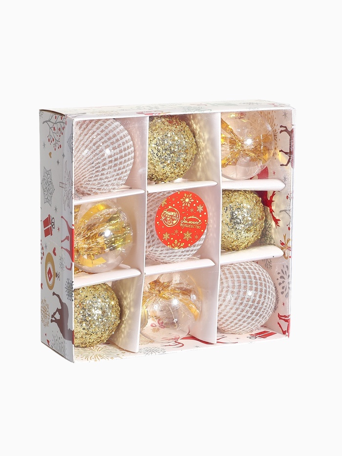 Ёлочные игрушки «Капризы зимы», шары новогодние, d=6 см, 9 шт. золото — Характеристики