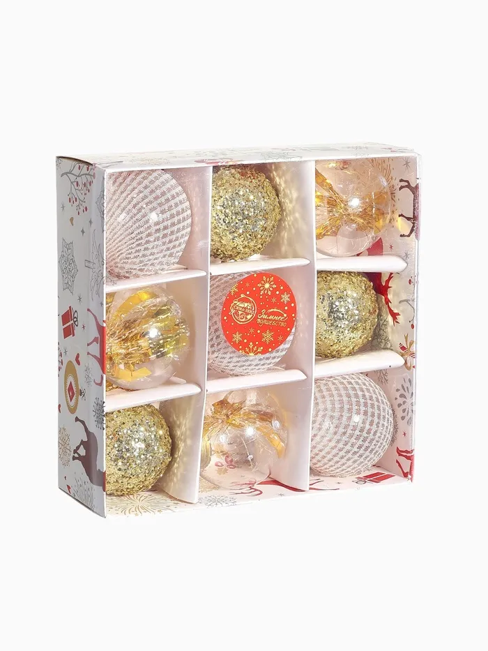 - Комплект из 9 шаров с уникальным узором.