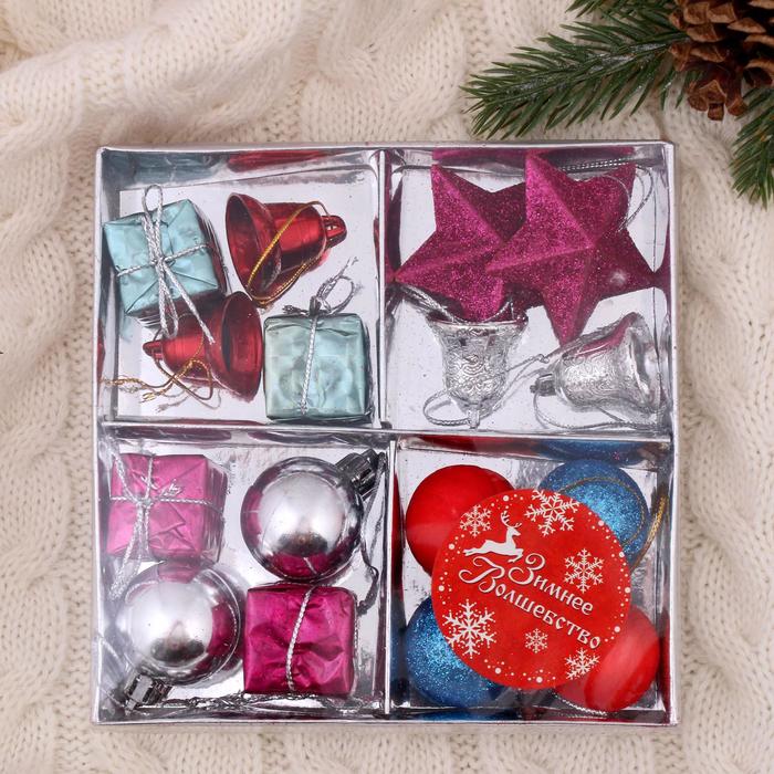 Ёлочные игрушки «Карнавал», набор 16 шт. (6 шаров, 4 подарка, 2 звезды, 4 колокольчика) — Характеристики