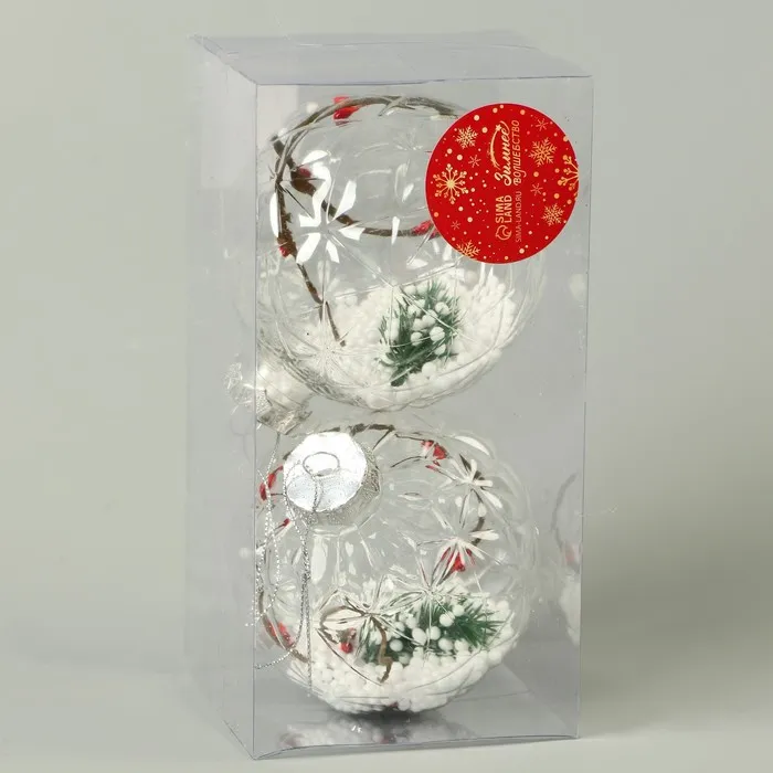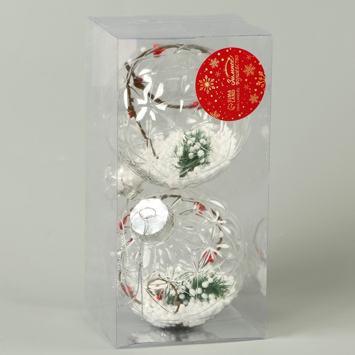 Ёлочные игрушки «Карнавал», шары новогодние, d=10 см, набор 2 шт., веточка снег палочки — Характеристики