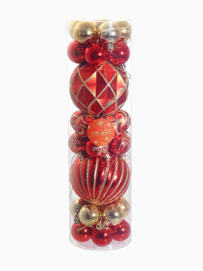 Набор из тридцати двух ёлочных шаров в красно-золотых оттенках станет незаменимым элементом для создания яркого и праздничного настроения в вашем доме. Эти шары, диаметром 4 и 10 см, выполнены из лёгкого и прочного пластика, что делает их удобными для развешивания и хранения. Их стиль, вдохновлённый новогодним барокко и фьюжн, придаёт особый шарм и элегантность любому новогоднему декору.