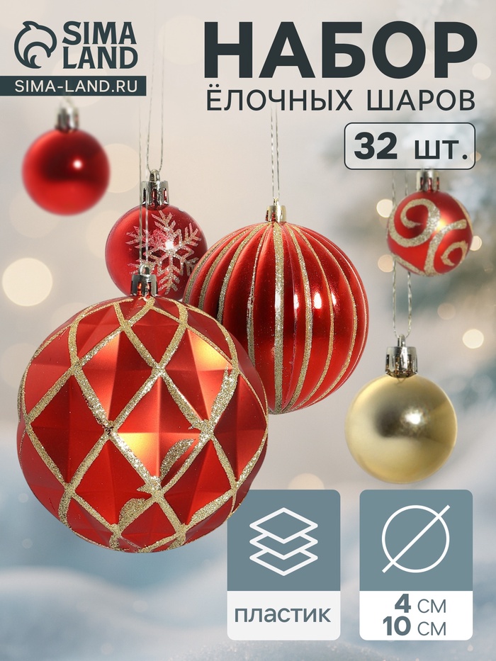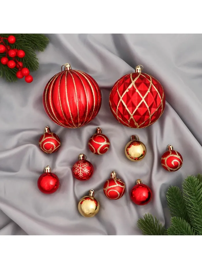 Эти ёлочные шары не просто украшения, а настоящие акценты, которые помогут вам создать волшебную атмосферу в вашем доме. Красный цвет символизирует радость и тепло, а золотые детали добавляют нотки роскоши и праздности. Такой набор идеально подойдёт для тех, кто хочет сделать свою ёлку центром внимания, привлекая взгляды и восхищение гостей.
