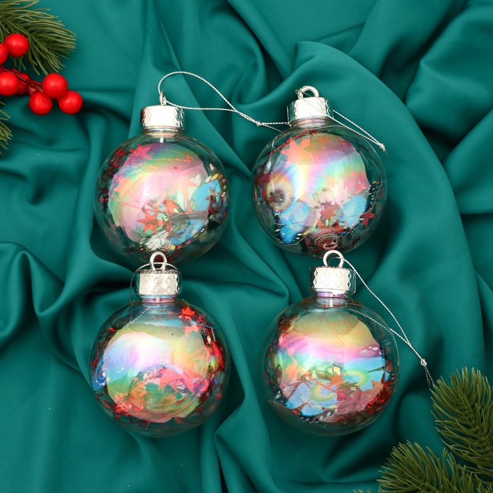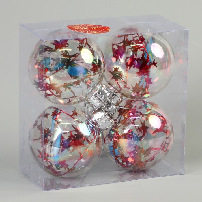 Ёлочные игрушки «Карнавал», шары новогодние, d=8 см, набор 4 шт., звёзды, бабочки