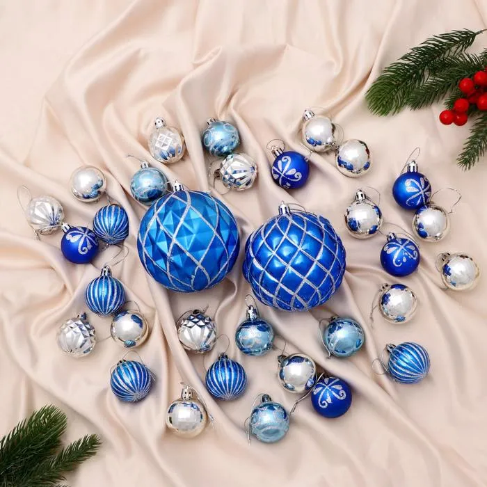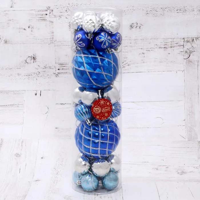 Ёлочные игрушки «Карнавал», шары новогодние, набор 32 шт., голубой/серебристый — Характеристики