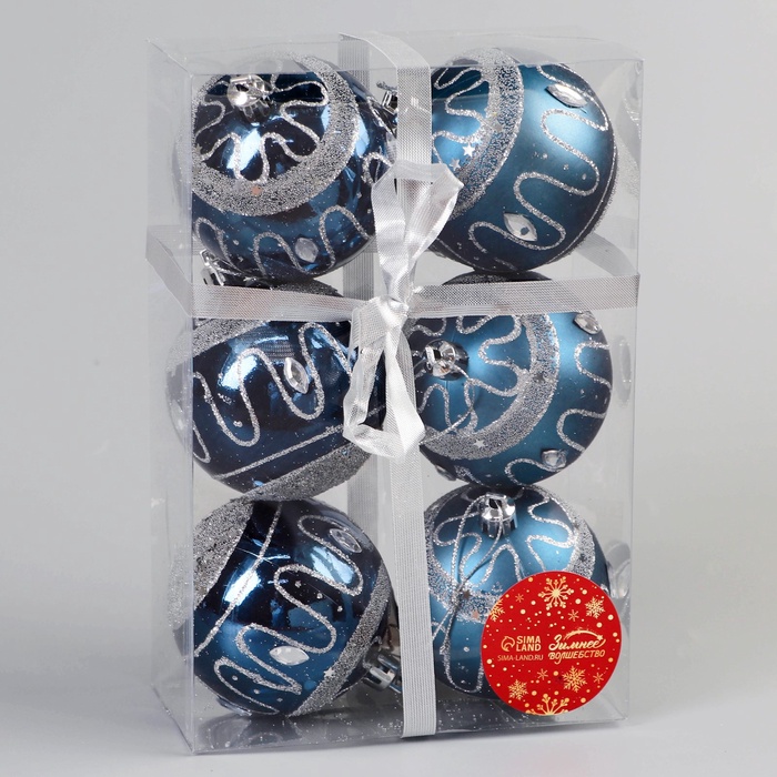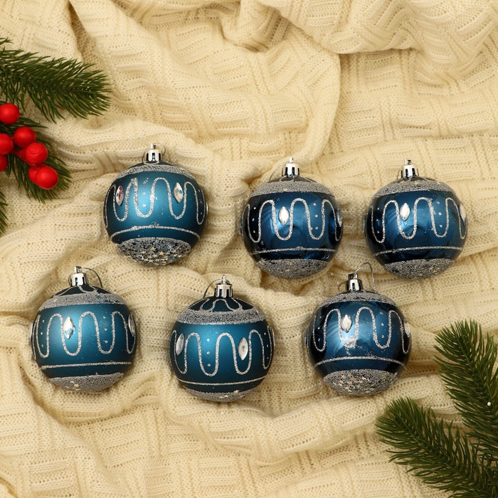 Ёлочные игрушки «Карнавальная ночь», шары новогодние, d=7 см, набор 6 шт., синий — Характеристики