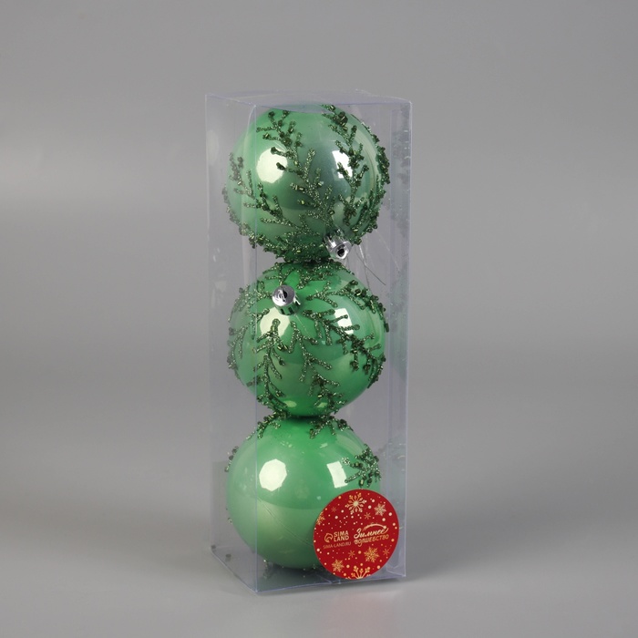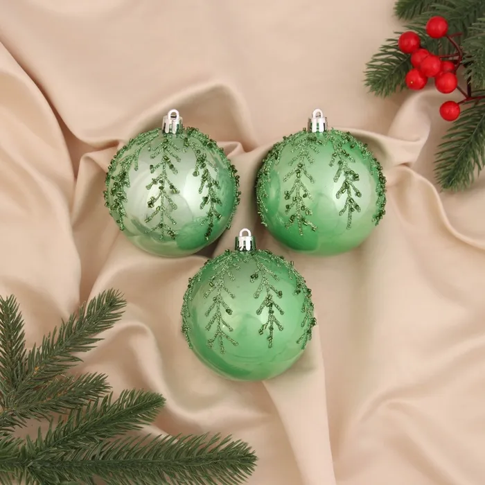 Ёлочные игрушки «Хайдвин», шары новогодние, d=8 см, набор 3 шт., холодок, зелёный — Характеристики