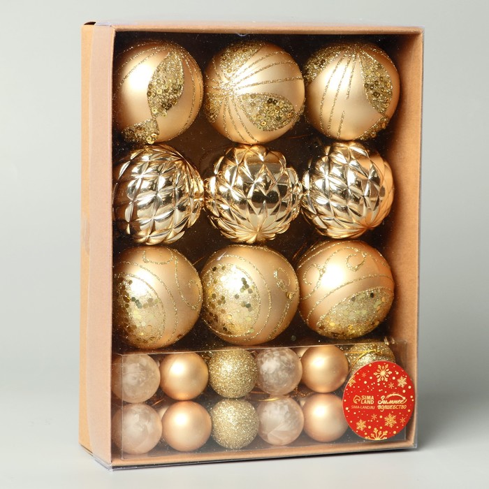 Ёлочные игрушки «Хоровод», пластиковые, набор 33 шт., d=2.5/5.5 см, золотистый — Характеристики