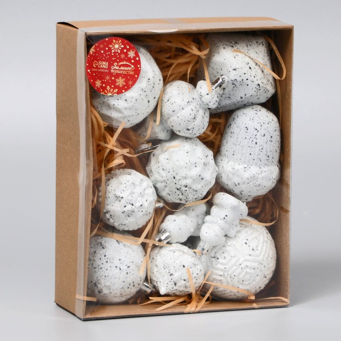 Ёлочные игрушки «Киссин», новогодние, набор 11 шт., белый — Характеристики