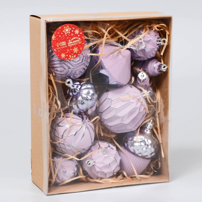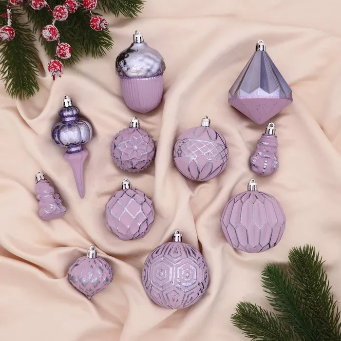 Ёлочные игрушки «Киссин», шары новогодние, набор 11 шт., сиреневый — Характеристики