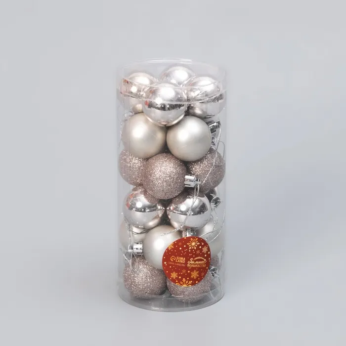 - Комплектация — 24 штуки, достаточно для полного оформления ёлки средних и больших размеров.